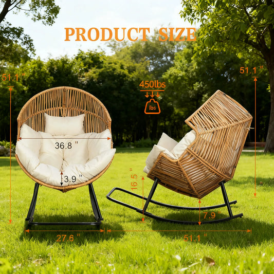 Rattan Rocking Chair with Cushion, Oversized for Indoor & Outdoor