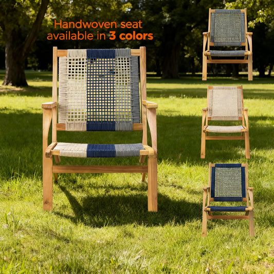 Teak Hand-Woven Outdoor Chair, Mid-Century Reclining Design